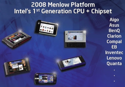 • Intel Unveils Customers and Ecosystem Players Planning to Showcase Menlow-based Platforms at CES: In a sign of growing ecosystem momentum behind MIDs and UMPCs, Intel plans to showcase a range of customers and ecosystem players who are working with the company to launch Menlow-based platforms and applications at CES. Expect Intel to demonstrate a range of Menlow-based MIDs and UMPCs from Aigo*, Asus*, BenQ*, Clarion*, Compal*, Elektrobit*, Inventec*, Lenovo*, Quanta* and others in the booth.